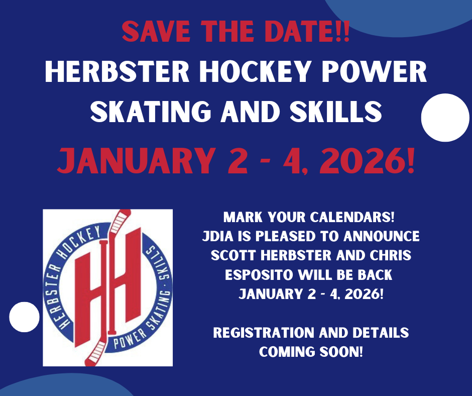 JDIA is pleased to announce Scott Herbster and Goalie Coach Chris Esposito with Herbster Hockey Power Skating and Skills will be back January 2 – 4, 2026.